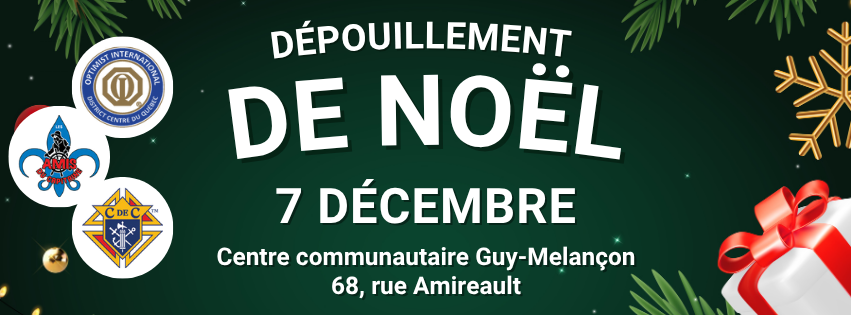 Les inscriptions pour le Dépouillement de Noël 2025 sont terminées. Rendez-vous l'année prochaine!